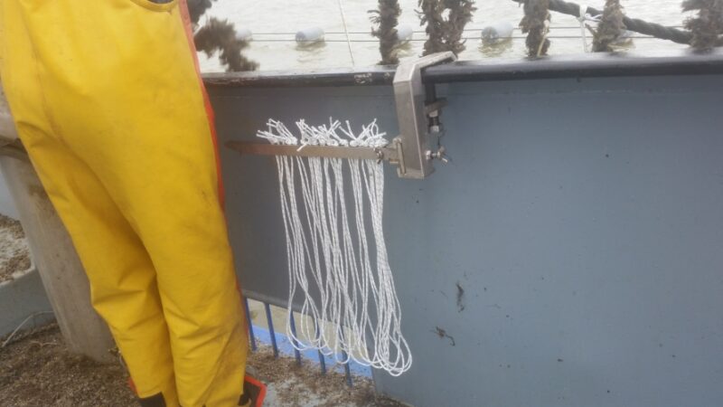 Het oogsten van het invangtouw gaat in omgekeerde volgorde. De kop van het schip in stroom en bij de voorste geleider worden de snoods afgesneden. Het invangtouw wordt door de venturi opgezogen en hierna schoongeborsteld. Hierna gaat het invangtouw in de kunstof kisten en het zaad in het ruim. Nieuwsgierig hoe het precies werkt? Bekijk het filmpje oogsten.